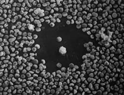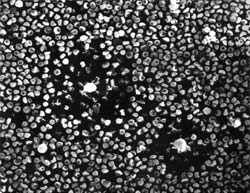 In 1972, I presented a poster session with my major Professor, Dr. Bob Leif, at the annual Reticuloendothelial Society Meeting. On my poster, I presented on very unusual cells from the spleen (and later from the lymph nodes) of non-immunized mice that destroyed sheep red blood cells (SRBC) on contact. I came very close to publishing the article in Science which took some time and effort, but the conclusion was that it was more suitable for the immunology journals. The papers were accepted in the Journal of Immunology. I did not know the proper name for these cells but was able to develop a way of enumerating them, determine their density and enrichment in linear bovine serum albumin gradients and study their morphology utilizing light, scanning electron and transmission electron microscopy. Many years later, I developed a clinical application by in vitro enriching natural killer cells for infusion into patients. Currently, I am investigating natural substances that are supposed to increase the natural killer cell response. Unlike complement mediated IgM antibody destruction of SRBC, which showed lyses of "plaques" of SRBC appearing as deflated balloons (Fig. 1), the complete destruction of the SRBC did not require prior immunization with SRBC or complement (Fig. 2). Thus, I gave them the name "complement independent plaque-forming cells" (CIPFC) or "rough lymphocyte plaque-forming cells" when I was able to perform scanning electron microscopy (SEM). Later, Heberman (1973) and Oldham (1973) used the term "Natural Killer Cell".